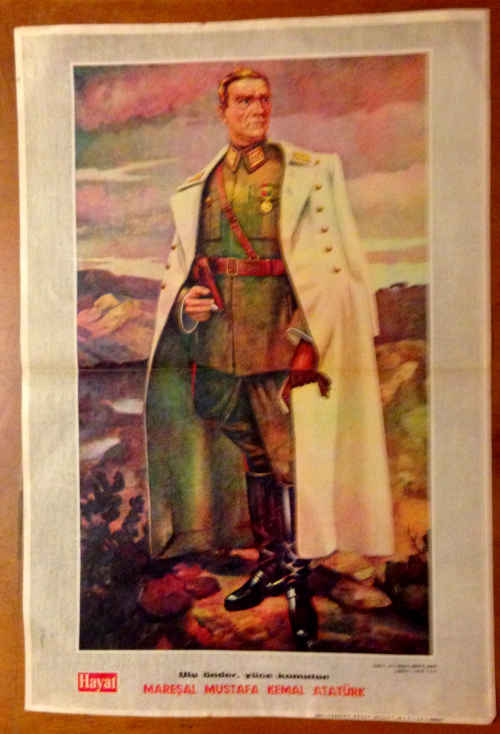 Bu yazının İSK dergisinde yayınlanmış olan versiyonunda “2.10m x 1.40m boyutundaki bu tablonun nerede olduğu bilinmiyor olsa gerek.” diye yazmıştım. Ancak kısa süre önce bir sahafta tablonun bir posterini bulduğumda aslının nerede olduğu bilgisine de ulaştım. Posterde resmin altına “Ulu Önder Yüce Komutan – Mareşal Mustafa Kemal Atatürk” ve sağ alt köşesine de “Ali Cemal Benim-1938” diye yazılmış. Aslının da Türkiye Büyük Millet Meclisi’nde olduğuna dair bir not düşülmüş.